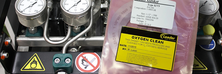 Many contaminated materials such as oils, fats, fibers, solvents, sand or dirt respond strongly with gaseous or liquid oxygen at certain pressures and temperatures. These contaminants affect product purity and can even cause a fire or an explosion. The right gasket choice can prevent these dangerous situations. Leader Gasket has the knowledge and equipment to produce safe and 100% clean gaskets and double packaging for use in oxygen service.
